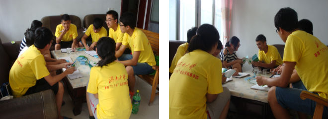 因为趁天气凉爽,大街上人比较多,便于展开调查,10日一大早,队员们就在村头集合,开始一天的工作。首先,队员们各自拿了些事先准备好的调查问卷,分头展开调查。调查问卷包括“您的村庄采取哪种供水方式”、“您对试试垃圾分类有什么看法”等直接关于环境污染的问题。村民们也都积极配合,积极地完成了调查问卷,还对当今的乡镇企业对环境的污染及其污染的防治发表了自己的看法,队员们做好了记录。接下来,队员们结合当地环境污染现状,给部分村民开展环保知识技能培训。培训包括向村民们展示当地的环境污染现状,并向村民们介绍了一些简单的自来水净化方法和其它的保护环境的措施。村民们认真听取了队员们的讲解,并表示对以后保护环境和宣传保护环境有很大的帮助。